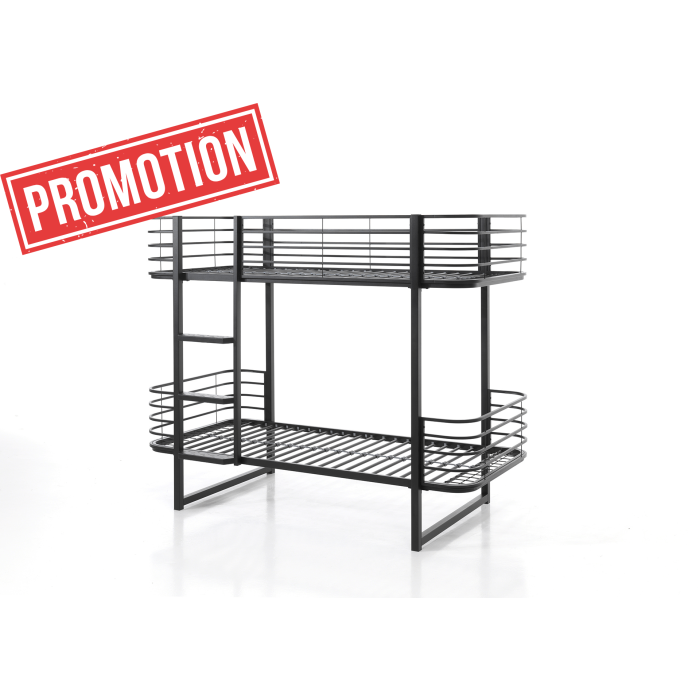 | Specificaties | Material: Metal Finish: Lacquered Colour: BLACK Slat base included: Yes Product style: Industrial Maximum mattress thickness: 15 Maximum weight in KG: 75 Minimum age: 4 years Certificates: EN747 1&2 FSC Certified: No Assembly time in minutes: 60 Length assembled in MM: 2050 Width assembled in MM: 1040 Height assembled in MM: 1660 |